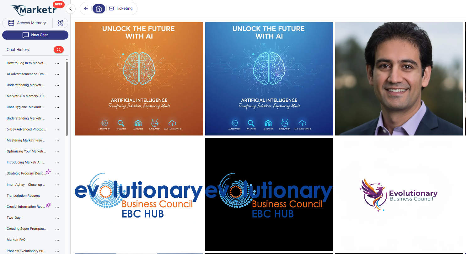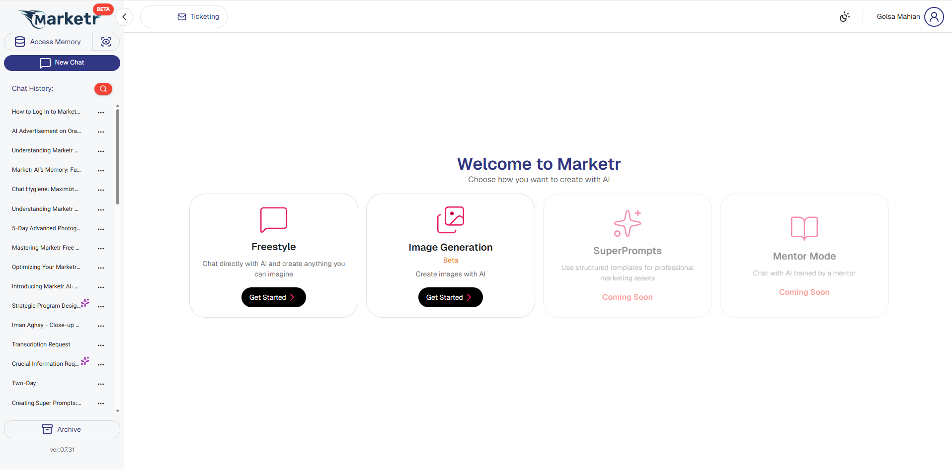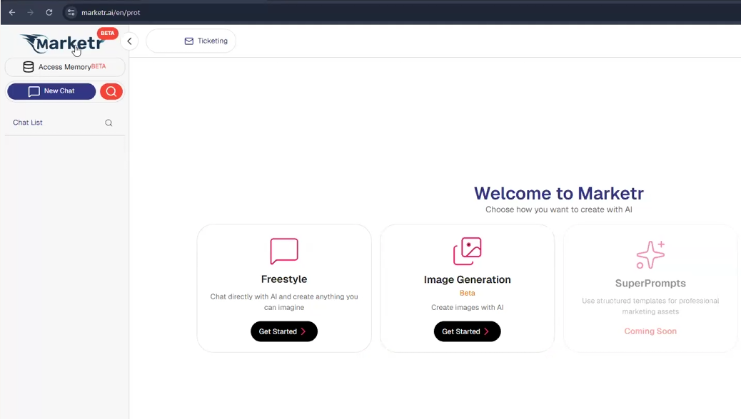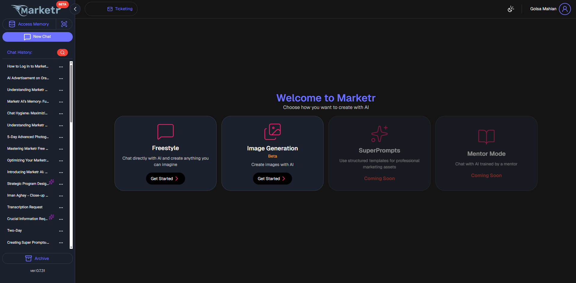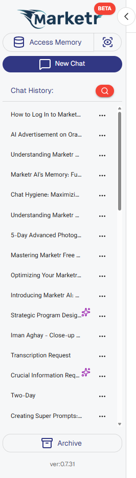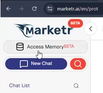 2. Memory Feature Marketr features an accessible "Memory" section, a standout capability allowing users to organize and retrieve past interactions and saved information within folders. This powerful feature enhances workflow and knowledge management.