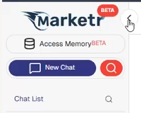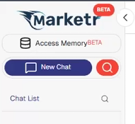 4. Comprehensive Search Function Located next to the "New Chat" button, the "Search" function enables users to search across all past chats and stored memory within their Marketr account, making it easy to locate any information.