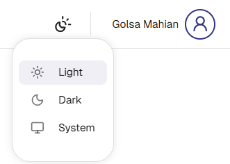 2. Theme Settings Users can customize their dashboard's visual theme by selecting between "Light," "Dark," or "System" modes. The "System" option aligns the dashboard's theme with the user's computer's default settings.