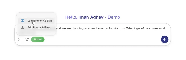 Marketer possesses a memory feature that allows users to load previously saved programs or information, ensuring continuity and context in ongoing conversations. This is particularly useful for referencing existing projects or business details.