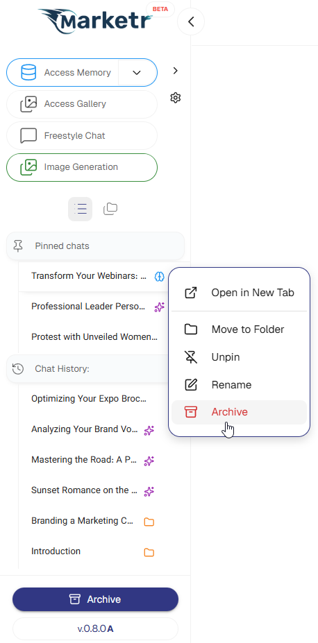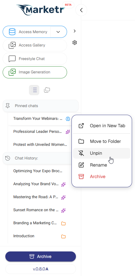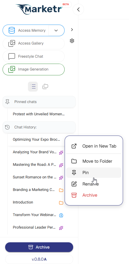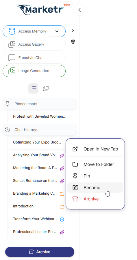 Users have the option to manually rename a chat, which will prevent Marketer from automatically updating its title thereafter.