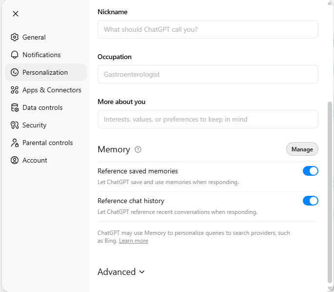 - Then, select "Manage Memory" or "View Memory" to see all your saved memory items. This section allows you to review exactly what ChatGPT has stored about you.