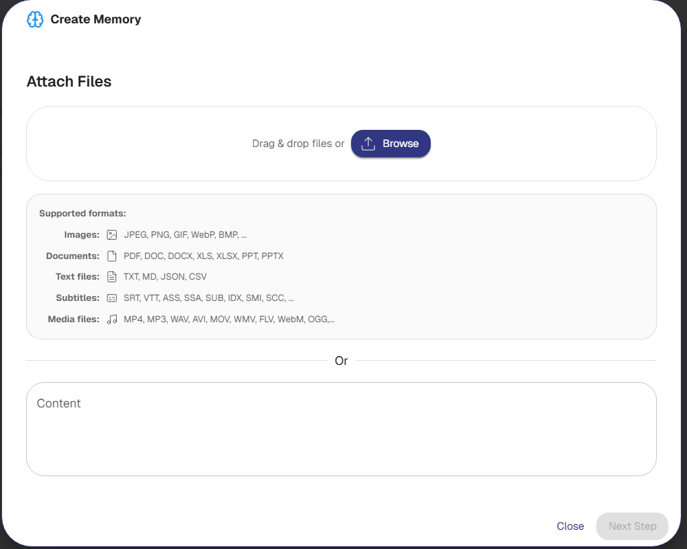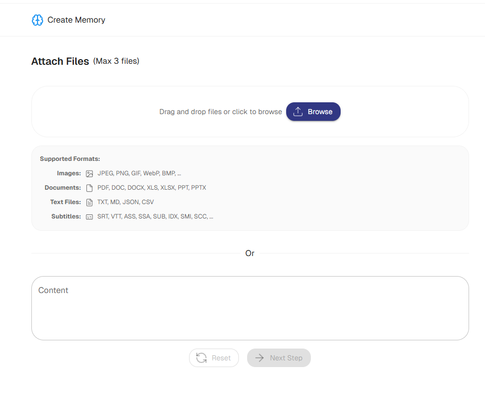If you have multiple memories saved in a text file or a structured document (like from Method A's manual backup, or potentially parsed data from Method B's full export), you can upload them.