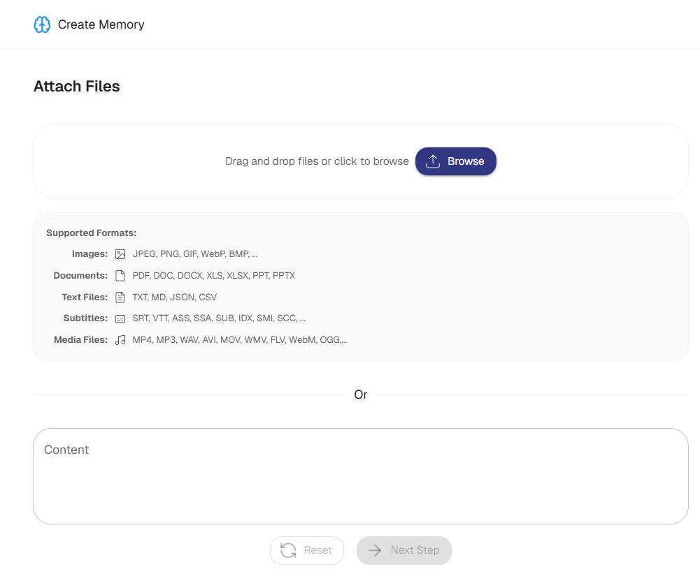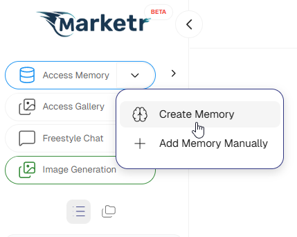 - Within Marketr AI's "Create a Memory" section, look for an "Upload File" option.