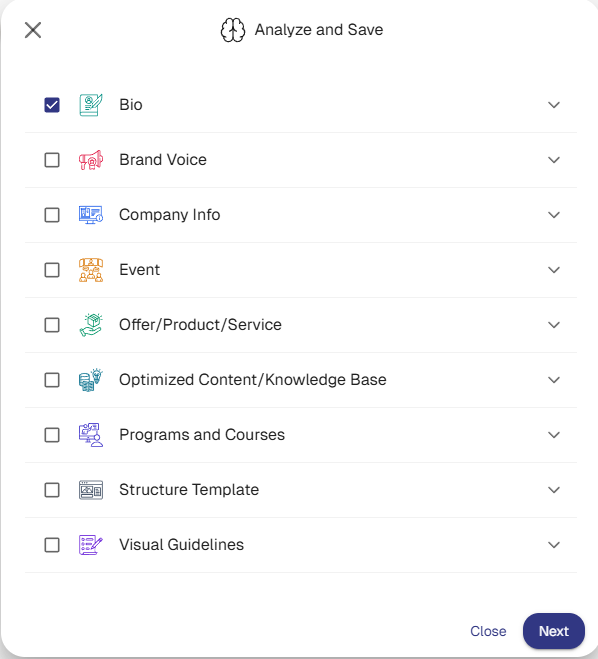 - Save it to the preferred categories and Marketr will find the content related to selected category in the uploaded file.